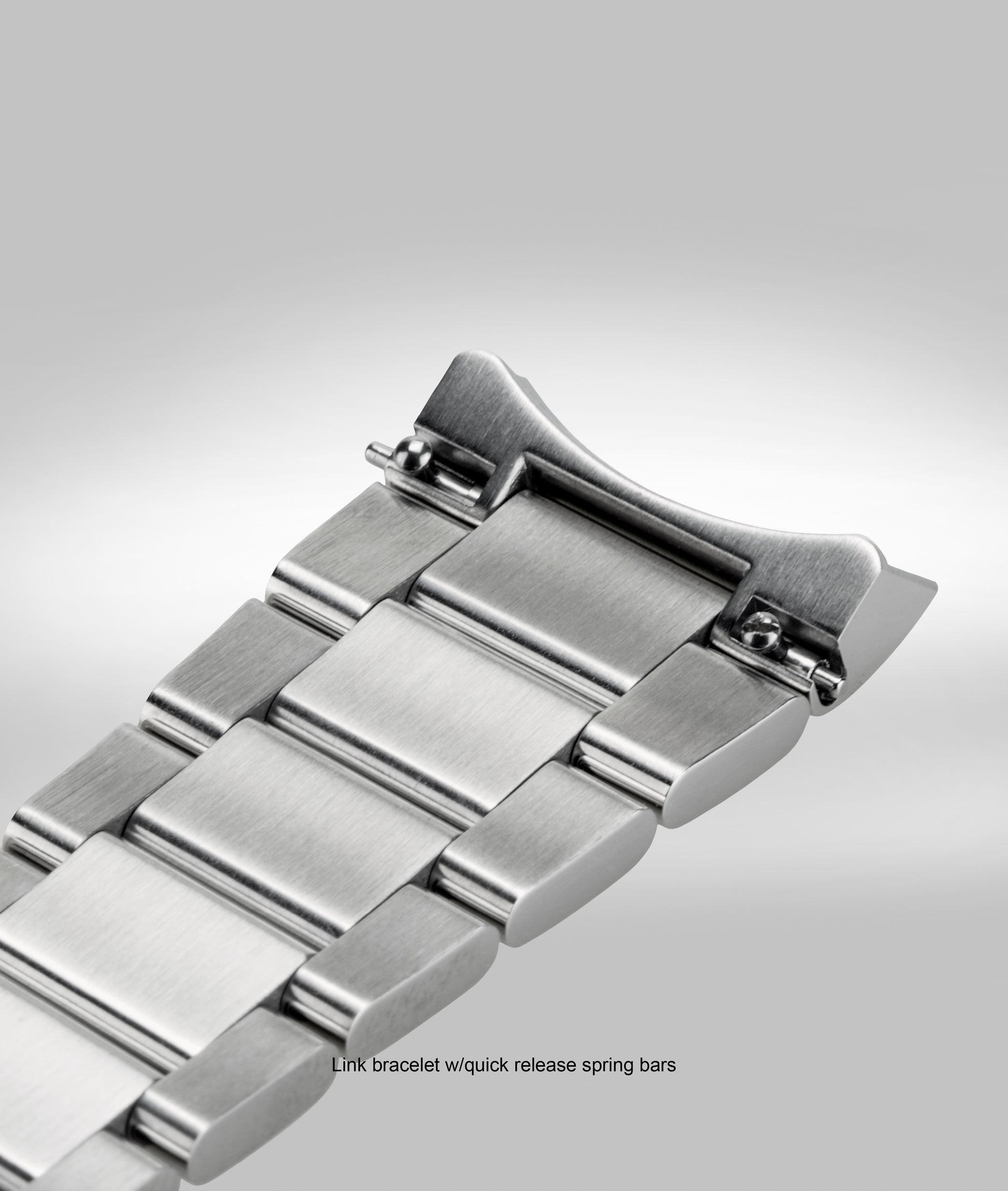 Stainless steel link bracelet with deployant clasp and quick release spring bars