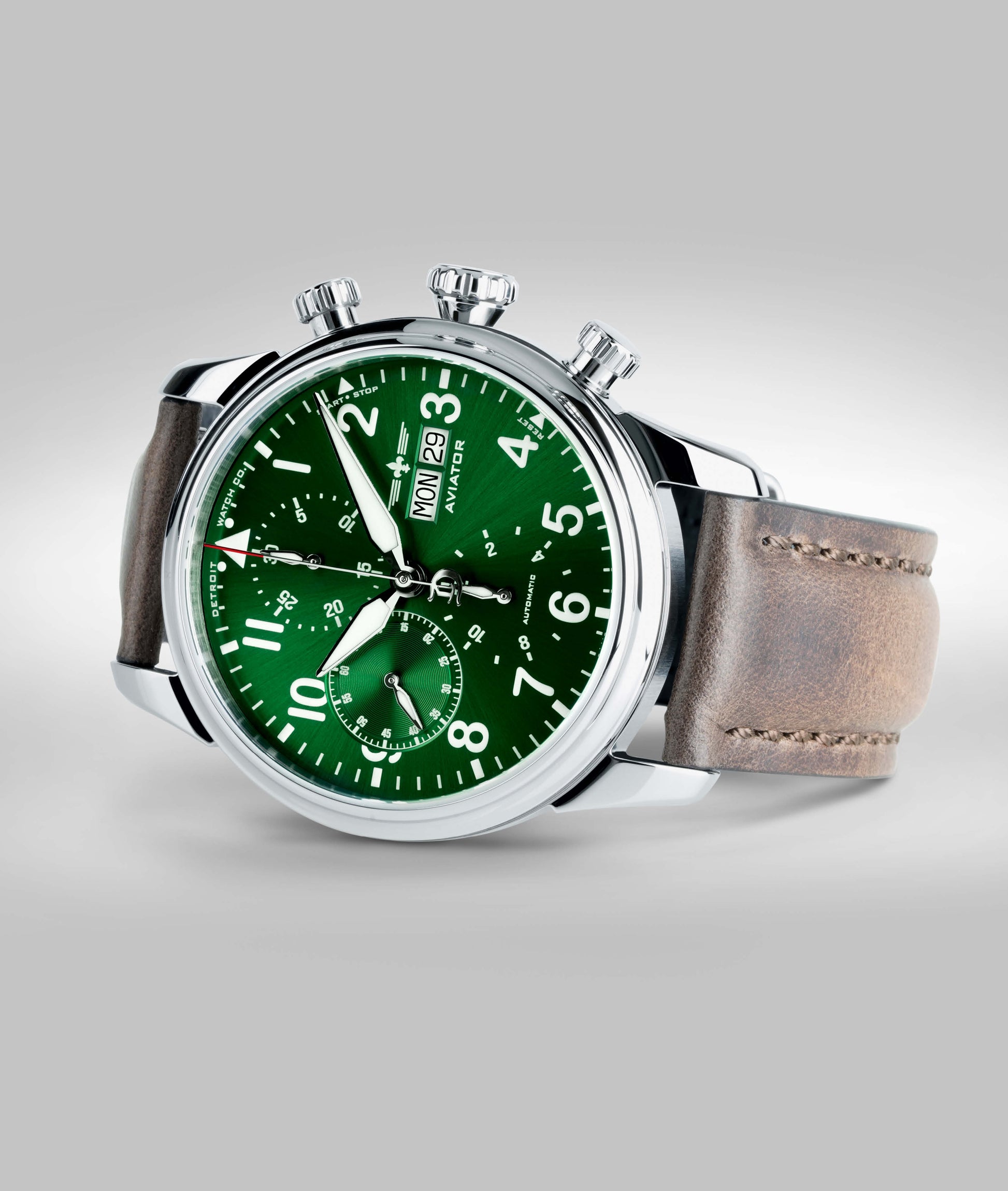 Dial: Black-Blue and Green options. Hour indexes with Superluminova