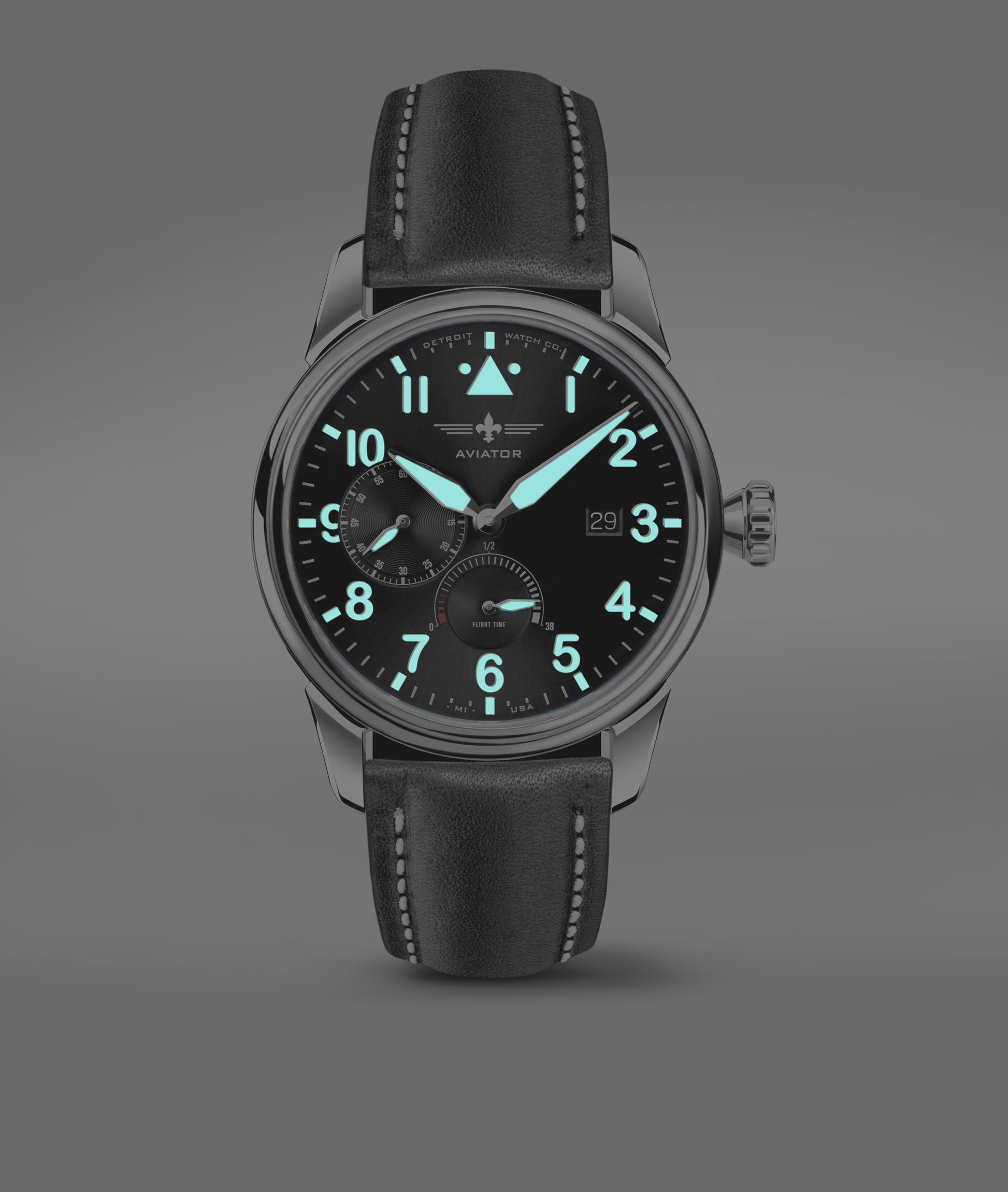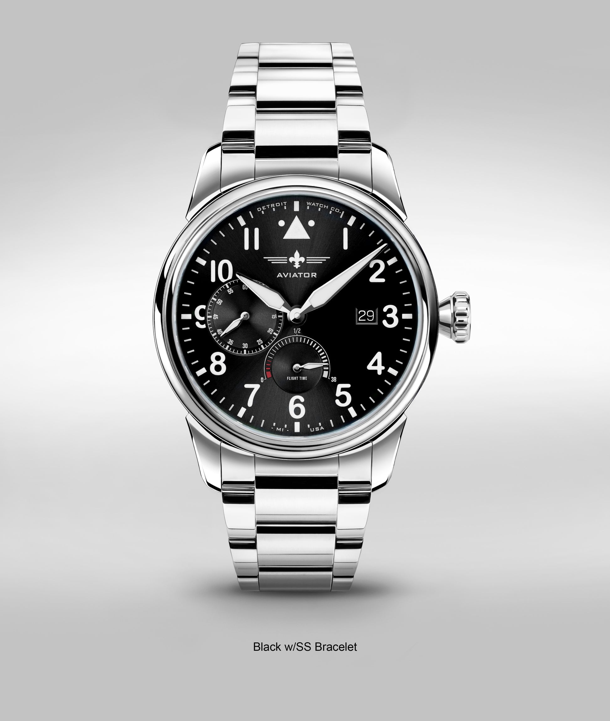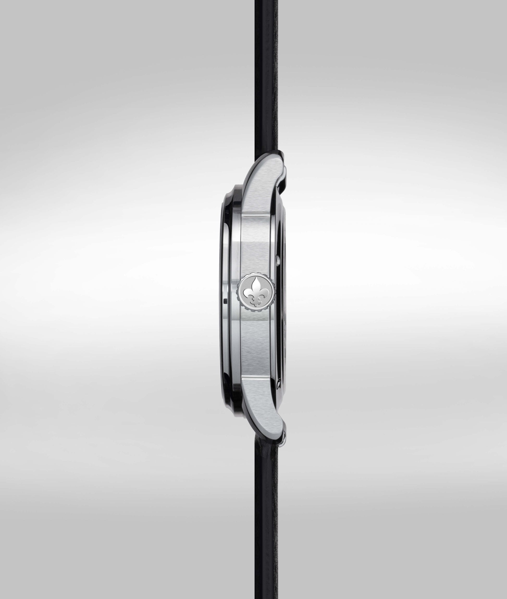 42mm case. Automatic self-winding movement with date window. Crown with Detroit Fleur-de-Lys. Calf Leather band with buckle.