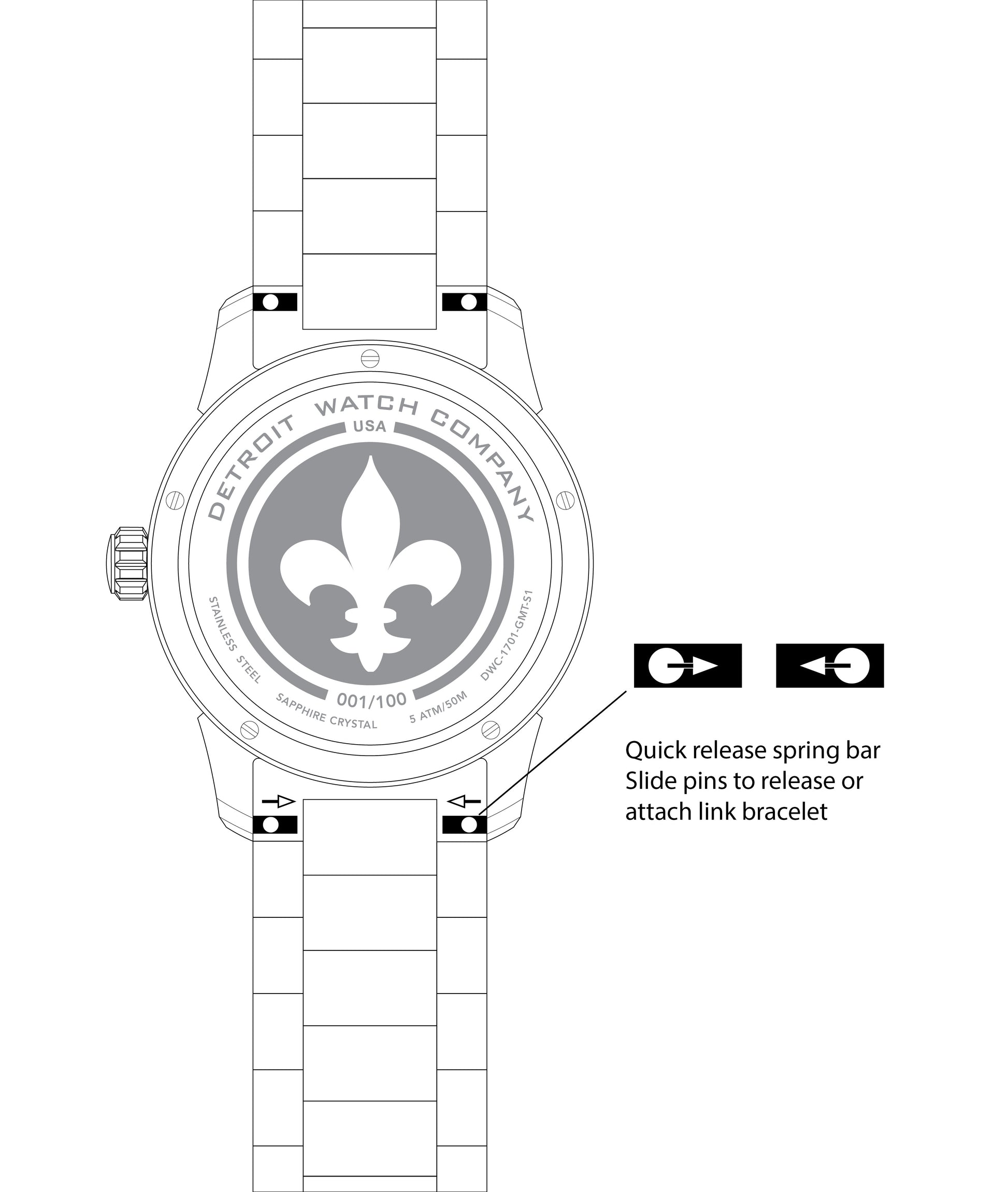 Stainless Steel Bracelet. Designed to fit all newest DWC 39mm collection timepieces only. Will not fit other models, older 39mm collection or other brands. Solid link stainless steel bracelet, 3mm thick with screws to add/remove for sizing. End links to fit between lugs.